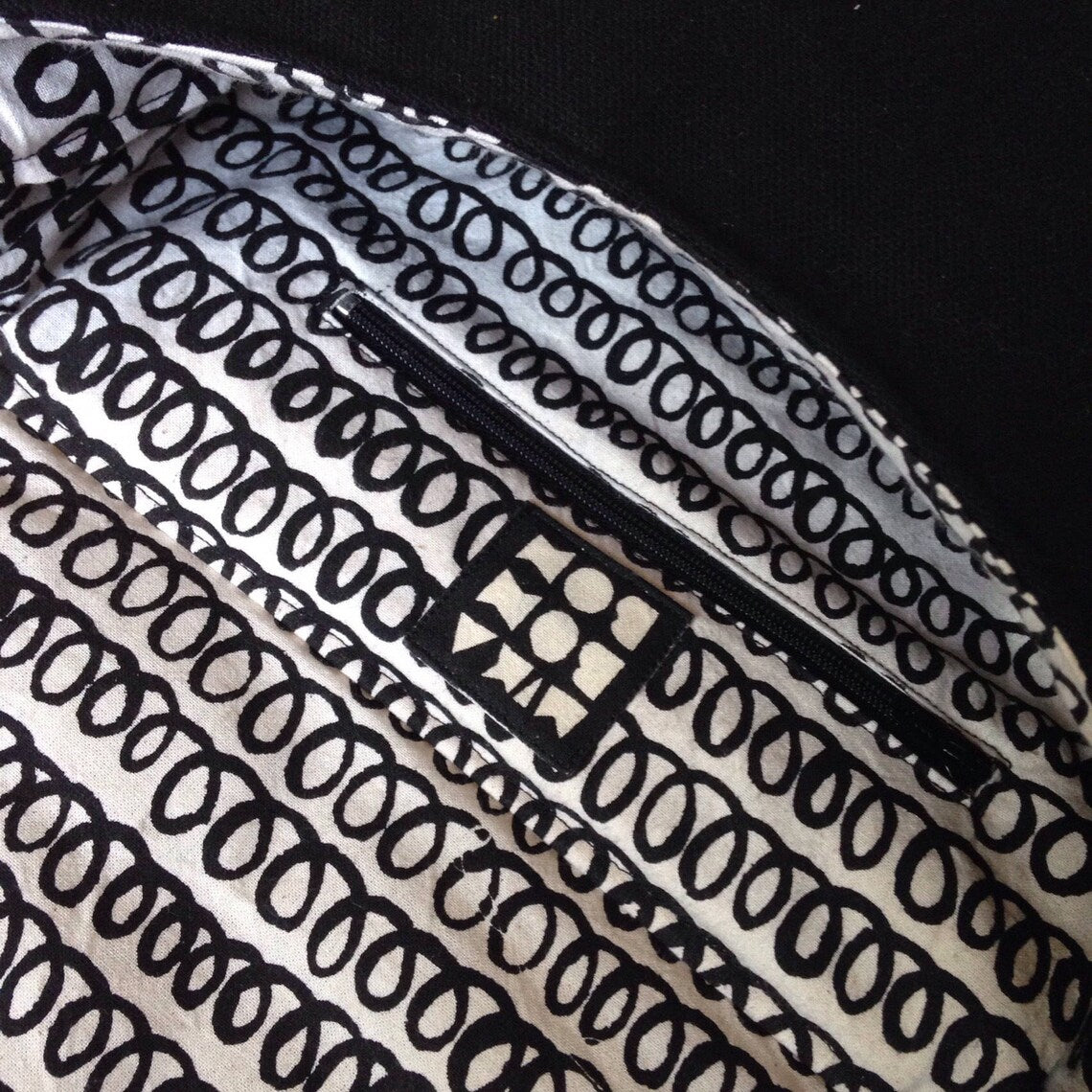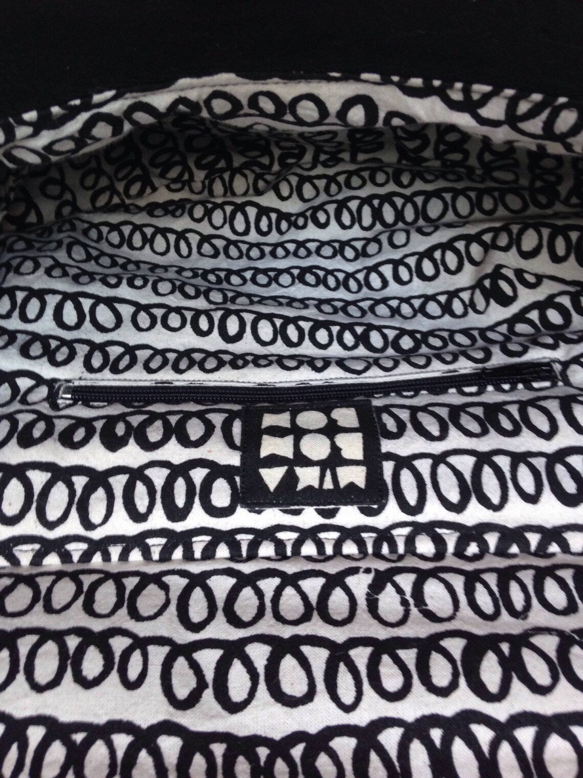 The bag is fully lined with unbleached cotton hand screen printed with my own original hand painted design.